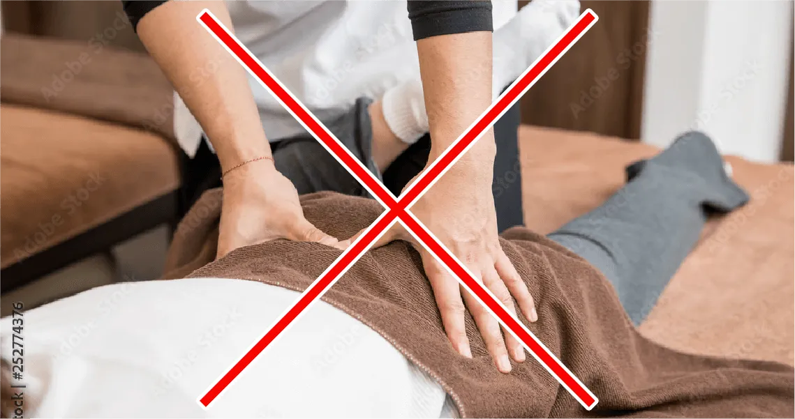 よくある間違った施術では、患部まわりのマッサージばかりしてしまうことがあります。 残念ながら、こういった治療も根本原因の解消には繋がらず、すぐに痛みは再発してしまいます。